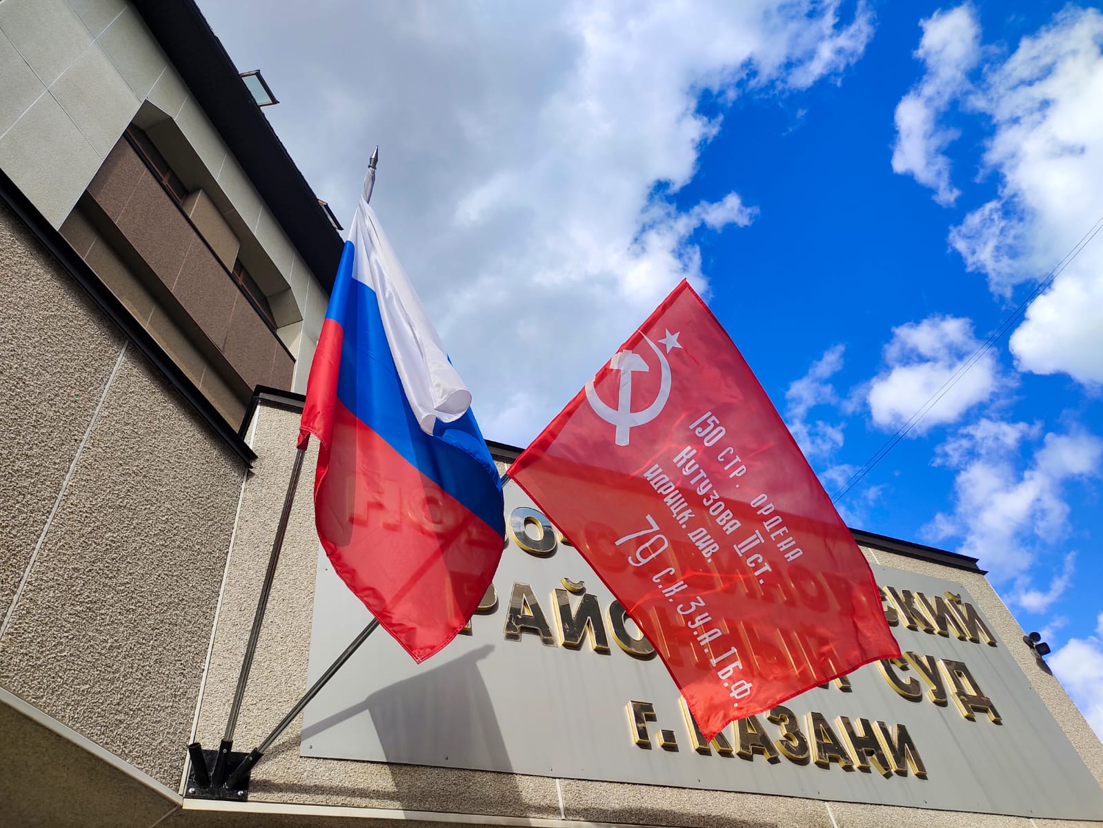 В преддверии празднования 80-летия Победы в Великой Отечественной войне на здании Ново-Савиновского районного суда г.Казани вывешена копия Знамени Победы.