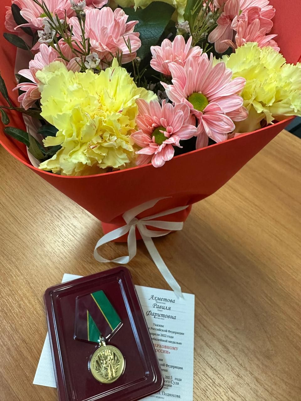 Сегодня еженедельное совещание коллектива Ново-Савиновского районного суда г. Казани началось с поздравлений. Начальнику отдела судопроизводства по административным делам Равиле Ахметовой вручена юбилейная медаль «100 лет Верховному Суду в Российской Федерации». Председатель Ново-Савиновского районного суда Александр Ковальчук пожелал Равиле Фаритовне дальнейших успехов в работе. Поздравляем!