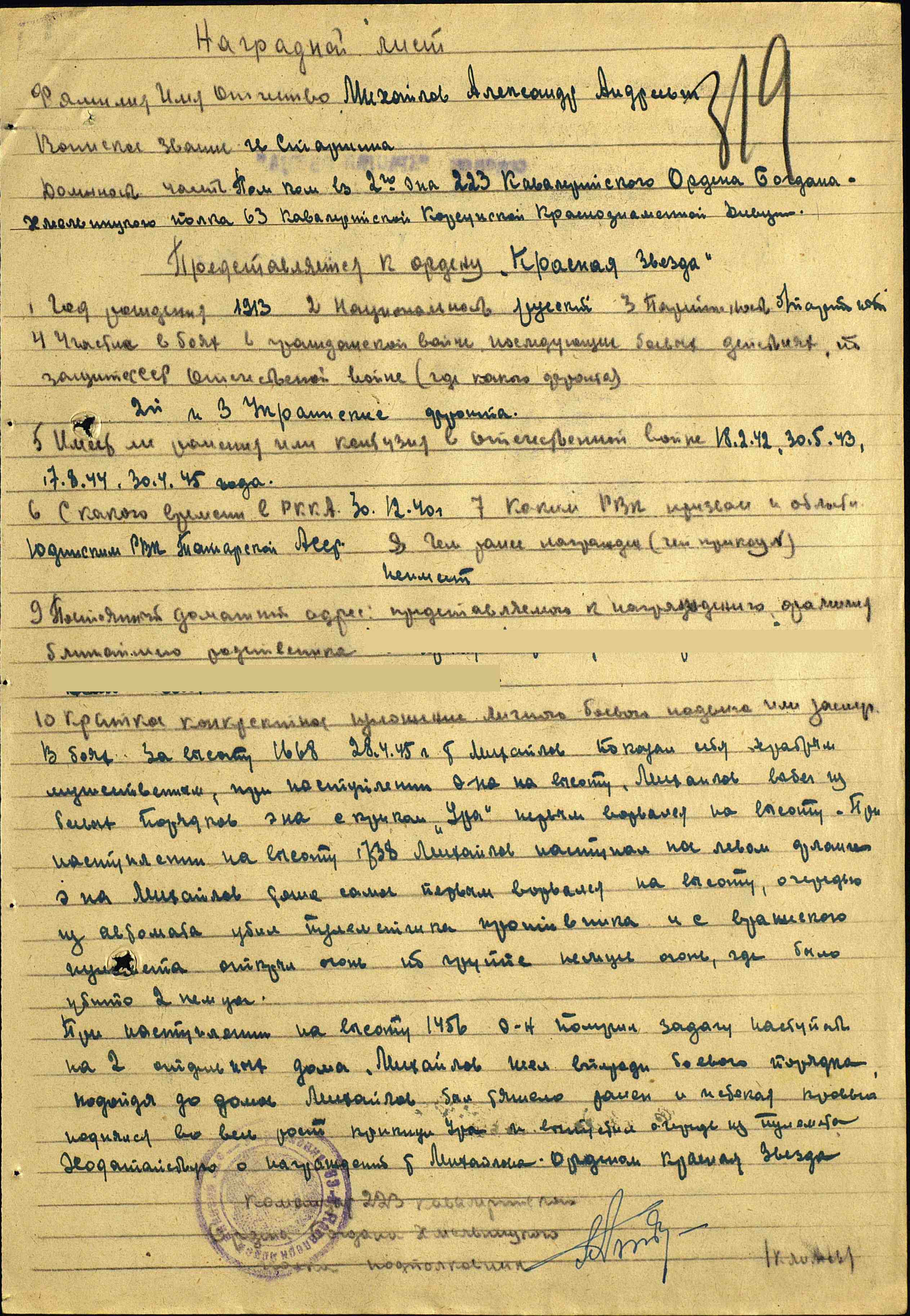 Ганул Николай ИвановичРодился 4 июня 1917 года в г. Енакиево Екатеринославской губернии Российской Империи (ныне Донецкой области Украины). Молдаванин. В 1934-37 гг. учился в металлургическом техникуме г. Енакиево, затем в г. Красный Сулин работал техником на металлургическом заводе и учителем свиносовхоза «Ударник».В ряды Рабоче-Крестьянской Красной армии призван 1 января 1938 года Новошахтинским ГВК Ростовской области. Военную присягу принял 5 сентября 1938 г. Срочную службу начал в 37-м пограничном отряде Грузинского пограничного округа, г. Батуми. В марте 1941 года переведён в 23-й Каменец-Подольский Краснознамённый пограничный отряд НКВД СССР. Участник Великой Отечественной войны. Награждён орденами Красной звезды и Отечественной войны II степени (1985), медалями «За оборону Кавказа», «За боевые заслуги», «За победу над Германией в Великой Отечественной войне 1941-1945гг.», а также другими юбилейные медалями и благодарностями командования. Умер Николай Иванович в 2002 году. Перов Петр Логинович Родился 15 октября 1919 года в деревне Кугальна Буинского района ТАССР. В апреле 1941 года он был призван на защиту Родины. Свой боевой путь он начал в 191 стрелковой дивизии в Волховском полку Ленинградской области. Пройдя всю войну от Волхова до Польши, он был награжден Орденом Красного Знамени, медалью «За боевые заслуги», ему присвоено звание «Герой Советского Союза». Он числится в списке «Они вернулись с Победой!».